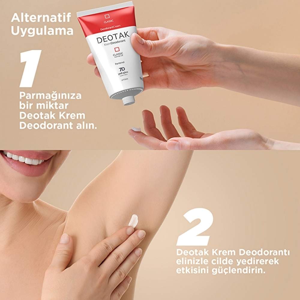 Cilt üzerinde ağırlık hissi yaratmadan etkisini sürdürmeyi amaçlayan yapısı, günlük bakım rutinlerine kolayca entegre edilebilir. Günlük iş temposunda, sosyal hayatta ya da uzun süren aktivitelerde güven hissini destekleyen bir kullanım sunar. Klasik koku anlayışıyla ferahlığı abartmadan sunan Deotak Classic Deo Krem, düzenli kullanımda konforlu ve istikrarlı bir deodorant deneyimi arayanlar için güvenilir bir alternatiftir.