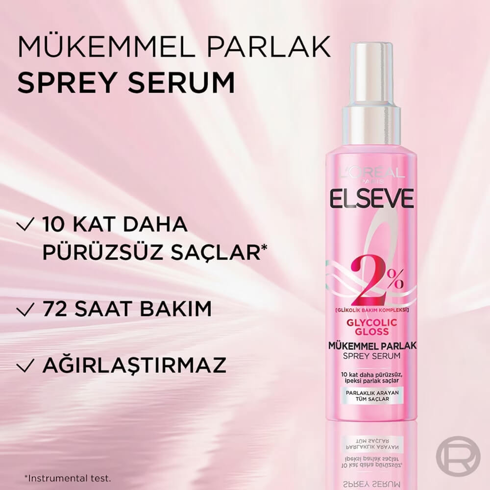 Gelince Haber VerGlikolik asit içeren formül ile geliştirilen bu sprey serum, saçı ağırlaştırmadan ışıltılı ve pürüzsüz bir görünüm kazandırmayı hedefler. 72 saate kadar parlaklık ve düz yüzey etkisi sağlar. Ağırlık hissi bırakmadan bakım yapar ve kabarmayı azaltır. Elseve Glycolic Gloss Sprey Saç Serumu 150 Ml, parlaklık isteyen saçlarda pratik ve etkili bir bakım sunar.