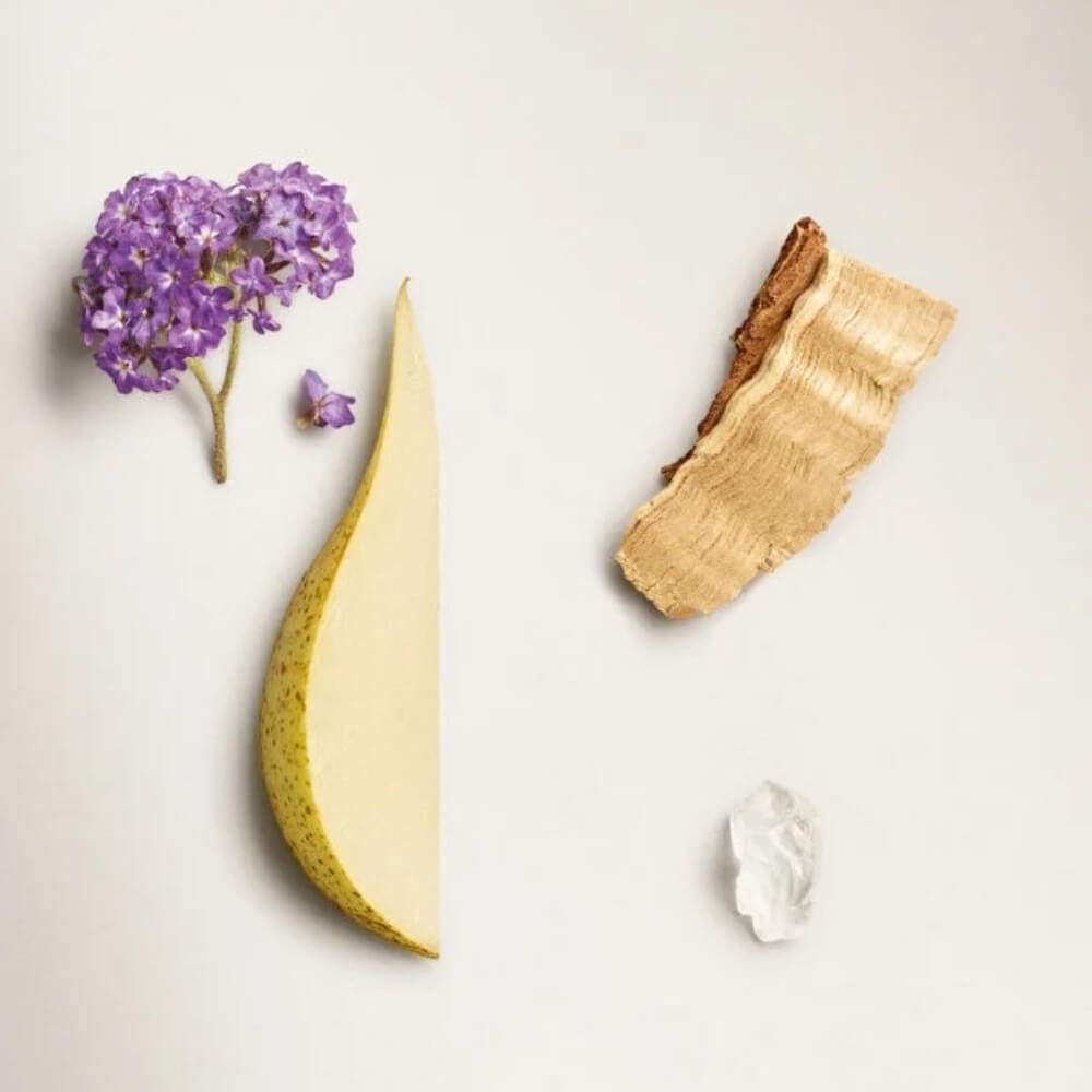 Parfümün açılışında turunçgiller ve armut birleşerek ferah, parlak ve meyvemsi bir giriş yapar. Kalp bölümünde kediotu, kakule, melekotu ve yasemin; aromatik, çiçeksi ve hafif baharatlı bir derinlik sağlar. Dip notalarda badem, beyaz misk, sedir, vanilya ve kehribar yer alır; bu bölüm parfüme sıcak, yumuşak ve kalıcı bir zarafet kazandırır. Gün boyunca tene uyum sağlayan bu final, parfümün karakterini tamamlayan ince ama etkileyici bir iz bırakır.