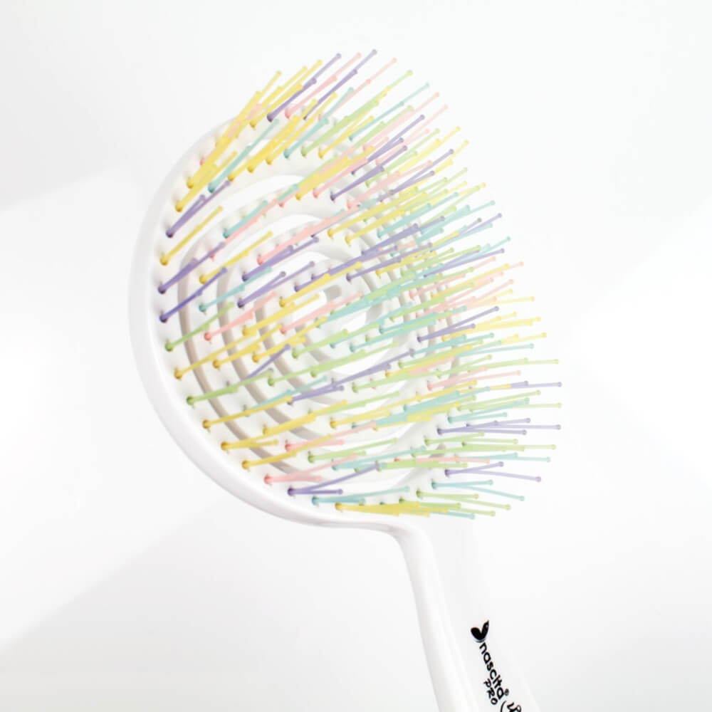 Gelince Haber VerNascita Profesyonel Max 3 Boyutlu Saç Fırçası Beyaz, saçlardaki dolaşıkları kırmadan açmak ve pürüzsüz bir görünüm elde etmek için özel olarak tasarlanmıştır. 3 boyutlu esnek diş yapısı, saç tellerine nazik davranarak elektriklenmeyi azaltır ve doğal parlaklık kazandırır. Isıya dayanıklı yapısı sayesinde fön işlemlerinde kullanılabilir, ergonomik sap tasarımı ise rahat bir kavrama imkânı sunar. Şık beyaz tasarımıyla hem profesyoneller hem de günlük kullanıcılar için ideal olan bu fırça, güçlü, sağlıklı ve kolay şekillenen saçlar için mükemmel bir tercihtir.
