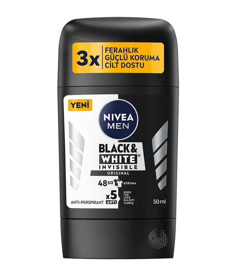 Türkiye'nin Lider Deodorantı NIVEA'dan NIVEA Men Erkek stick Deodorant Black&White Invisible Original 50 ml: