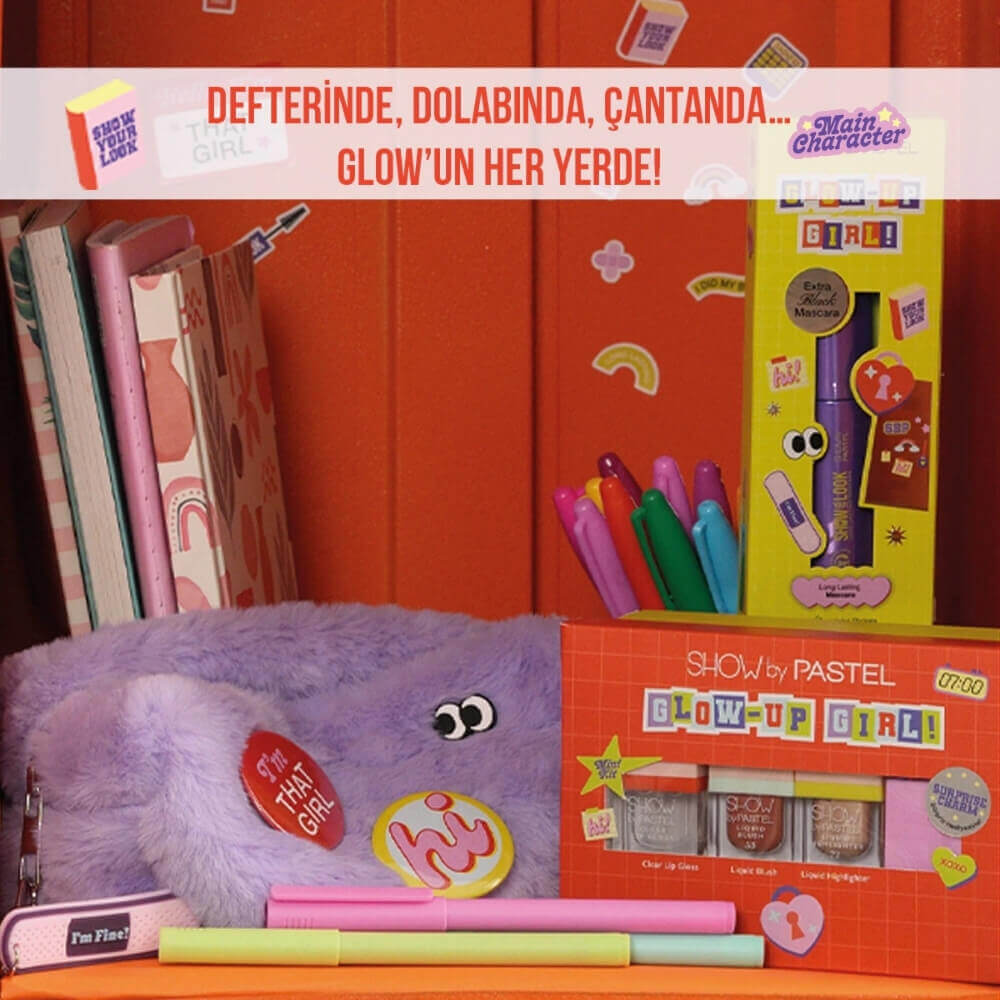 Pastel Show By Pastel Glow Up Girl, genç, enerjik ve kendini ifade etmeyi seven makyaj tutkunları için tasarlanmış modern bir makyaj serisidir. Serinin amacı; cildi daha canlı, daha parlak ve daha taze göstermeyi sağlayan ürünleri bir araya getirerek, herkesin kendi “glow up” etkisini kolayca yaratmasını sağlamaktır. Hem gündelik kullanımda hem de gece makyajında etkileyici görünmek isteyenler için pratik, hafif ve göz alıcı sonuçlar sunar.