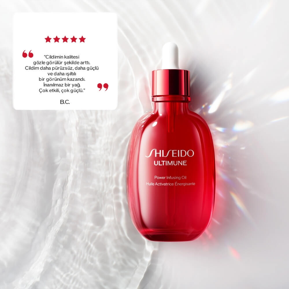 Bu çok yönlü formül, yüz, vücut ve saçta kullanılabilir, cilde yoğun nem ve besleyici bakım sağlar. Düzenli kullanımda cilt daha pürüzsüz, esnek ve canlı bir görünüm kazanır; yorgunluk ve matlık görünümü azalır. Ultimune Power Infusing Oil, cilt bariyerini güçlendirirken, çevresel stres faktörlerine karşı cildi korumaya yardımcı olur ve makyaj öncesi veya gece bakım rutininde etkili bir adım olarak öne çıkar. Hafif yapısı, ciltte ağırlık bırakmadan uzun süreli konfor ve zarif bir parlaklık sunar.